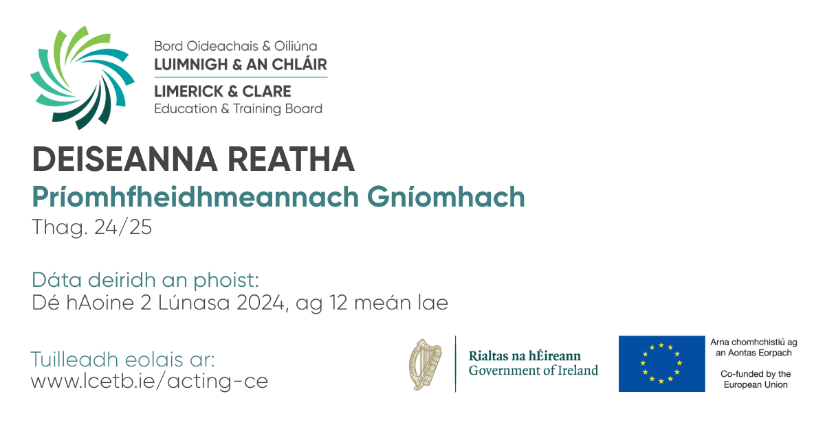 • Limerick and Clare Education and Training Board is an equal opportunities employer.