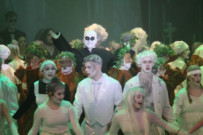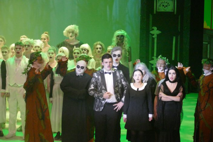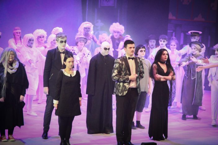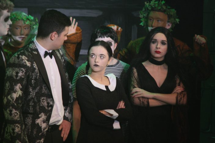 Coláiste Chiaráin has just concluded a very successful run of “The Addams Family Musical” in the spectacular Lime Tree Theatre, Mary Immaculate College. The show ran from Friday 25th to Saturday 26th January with both nights an absolute sellout! The hardworking cast and crew had been preparing for this production since September 2018 and put in tireless hours after school, during the Christmas holidays, mid-terms and the weekends.