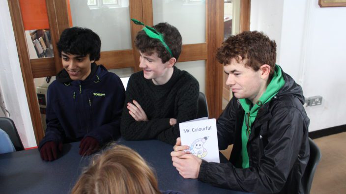 They paid a visit to Croom National School and had a reading morning with 1st class. The boys and girls from the primary school had the opportunity to sit with the transition years and sample all the books. The favourite among the young readers was Mr. Smelly!