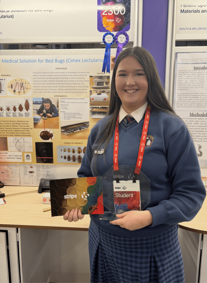 Sophie Keane, Desmond College, took The Housing Agency Award and 2nd place in the Senior Health & Wellbeing category for Effective Medical Solution for Bed Bugs.
