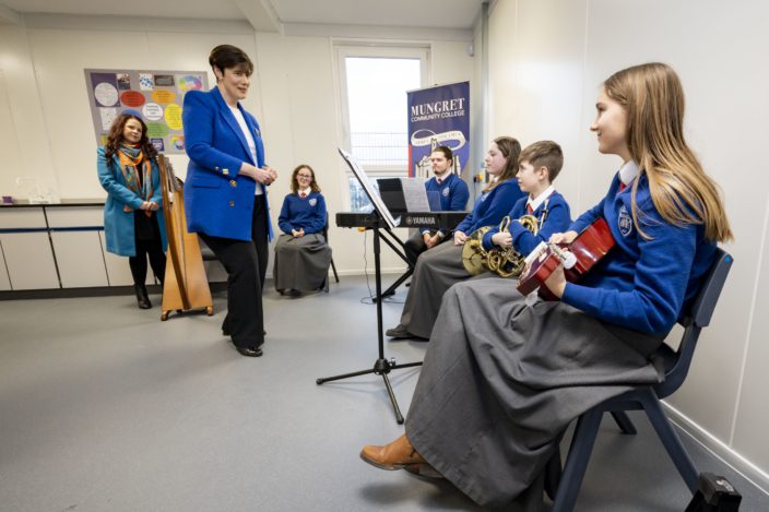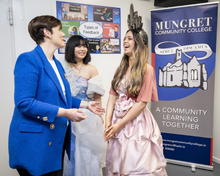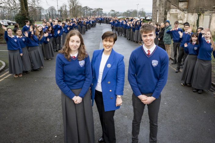 Speaking to students, staff and members of the Board of Management, Minister Foley said: “It’s a great honour for me to be here and to have the opportunity to meet with all of you. Such a warm, warm welcome from all the student body that came out to meet with me. It greatly touched me. This is a great school. It has achieved so much in a short space of time and I think it’s just wonderful that this year we are looking at the Leaving Cert cohort who were the first students in the school. Thank you to the entire school community and your greatest resource in the school, your students.” She continued: “The Department is very proud that we are providing the resources to you, that you will have new facilities, greater facilities, better facilities. This is a school that has been achieved out of great determination. I wish you the very, very best in all that you choose to do.”