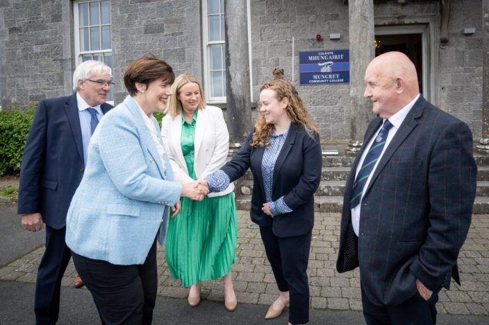 Deirdre Bourke, the newly-appointed Principal and Niamh Cooke, the newly-appointed Deputy Principal, were joined by George O’Callaghan, ETB Chief Executive, Cllr Kieran O’Hanlon, ETB Chair, Donncha Ó Treasaigh, ETB Director of Schools and Eamon Murphy, ETB Director of Organisation Support and Development as they and other invited guests welcomed the Minister.