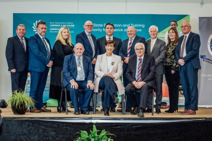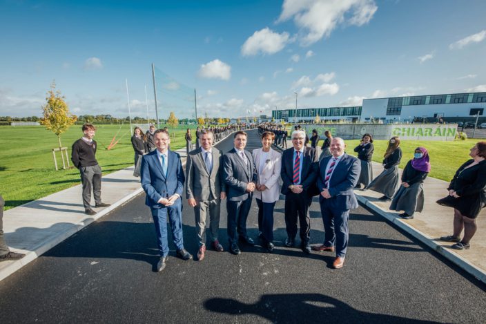 Limerick and Clare Education and Training Board marked the official opening on Friday 7th October of the multi-million euro new school campus at Coláiste Chiaráin Community College, Croom. The opening was undertaken by Minister for Education, Norma Foley TD, accompanied by Minister of State, Niall Collins TD, and Minister of State Patrick O’Donovan TD. The event was attended by the school’s students, staff and board of management; Mayor of the City and County of Limerick, Cllr Francis Foley; Chair of the ETB, Cllr Kieran O’Hanlon; ETB senior management; the project design team and the main contractor; as well as numerous elected representatives and representatives of the local community.