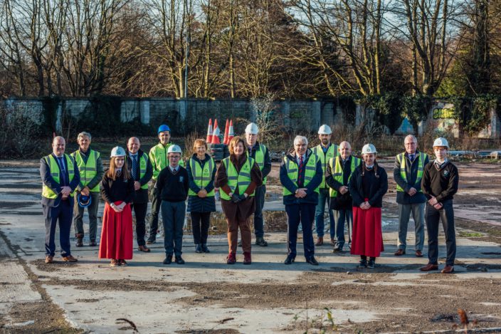 Limerick and Clare Education and Training Board welcomed the commencement on Tuesday 4th January 2022 of the multi-million euro development of a new school campus for Gaelcholáiste Luimnigh in Limerick City. The commencement was marked by Gaelcholáiste Luimnigh students at the site on Clare Street. Also in attendance was George O’Callaghan, ETB Chief Executive, along with the Chair and senior management of the school’s patron, as well as the Principal and the Chair of GCL’s Board of Management, the project design team and the main contractor.