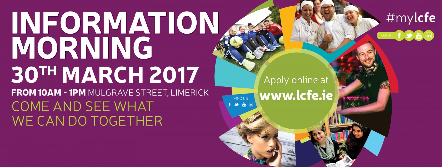 NEWS RELEASE 20 March 2017 – For Immediate Release LCFE – The Alternative Education Experience Limerick College of Further Education, the largest provider of Further Education and Training in the mid-west region will hold its Annual Information Morning on March 30th from 10.00 to 13.00. LCFE offers a wide range of courses at QQI Level…