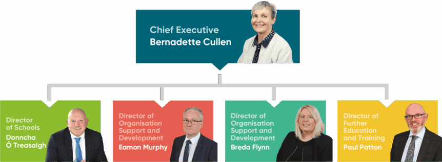The work of Limerick and Clare Education and Training Board is structured across three pillars: Organisation Support and Development, Schools and Further Education and Training, with the Directors of each pillar reporting to the Chief Executive.